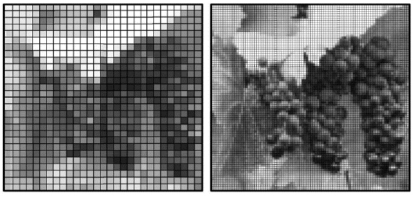 For our purposes, the photo on the left was shot with a pocket camera with a small sensor unable to pick up extreme detail. The photo on the right was shot with a professional camera with a larger sensor able to produce more pixels. Once a picture is taken, pixels can NOT be added – you’re stuck with the resolution the camera offers. Some software claims to “up-res” your photos, but don’t buy it! The resolution can NOT actually be improved.